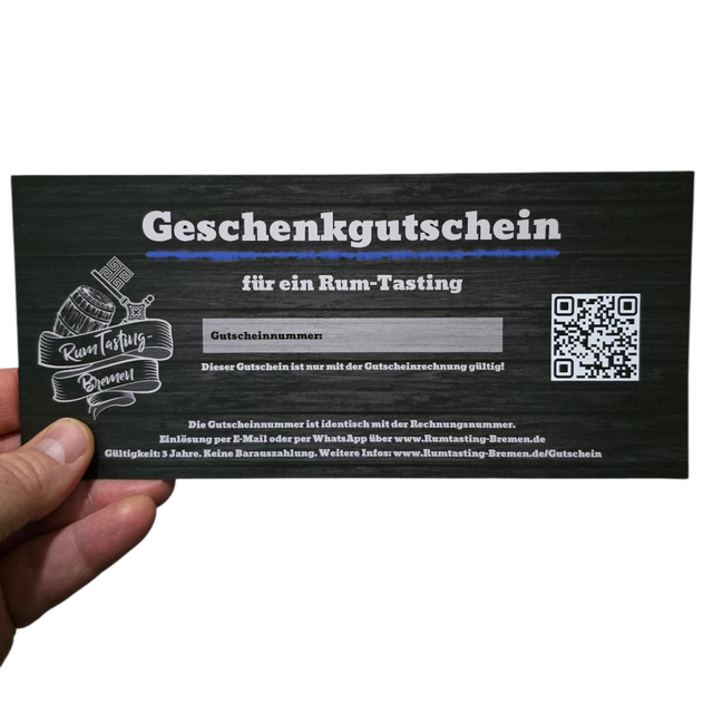 Verschenke ein besonderes Erlebnis voller Genuss und Geschichten rund um die Welt des Rums. Mit diesem Gutschein erhält der Beschenkte einen Wert von 59 €, der für jedes Rum-Tasting auf Rumtasting-Bremen.de genutzt werden kann.